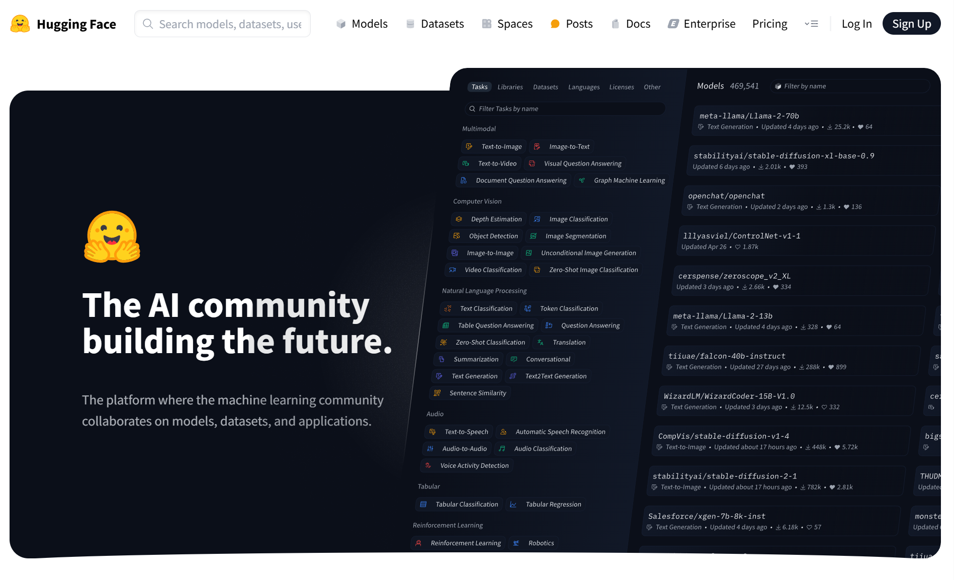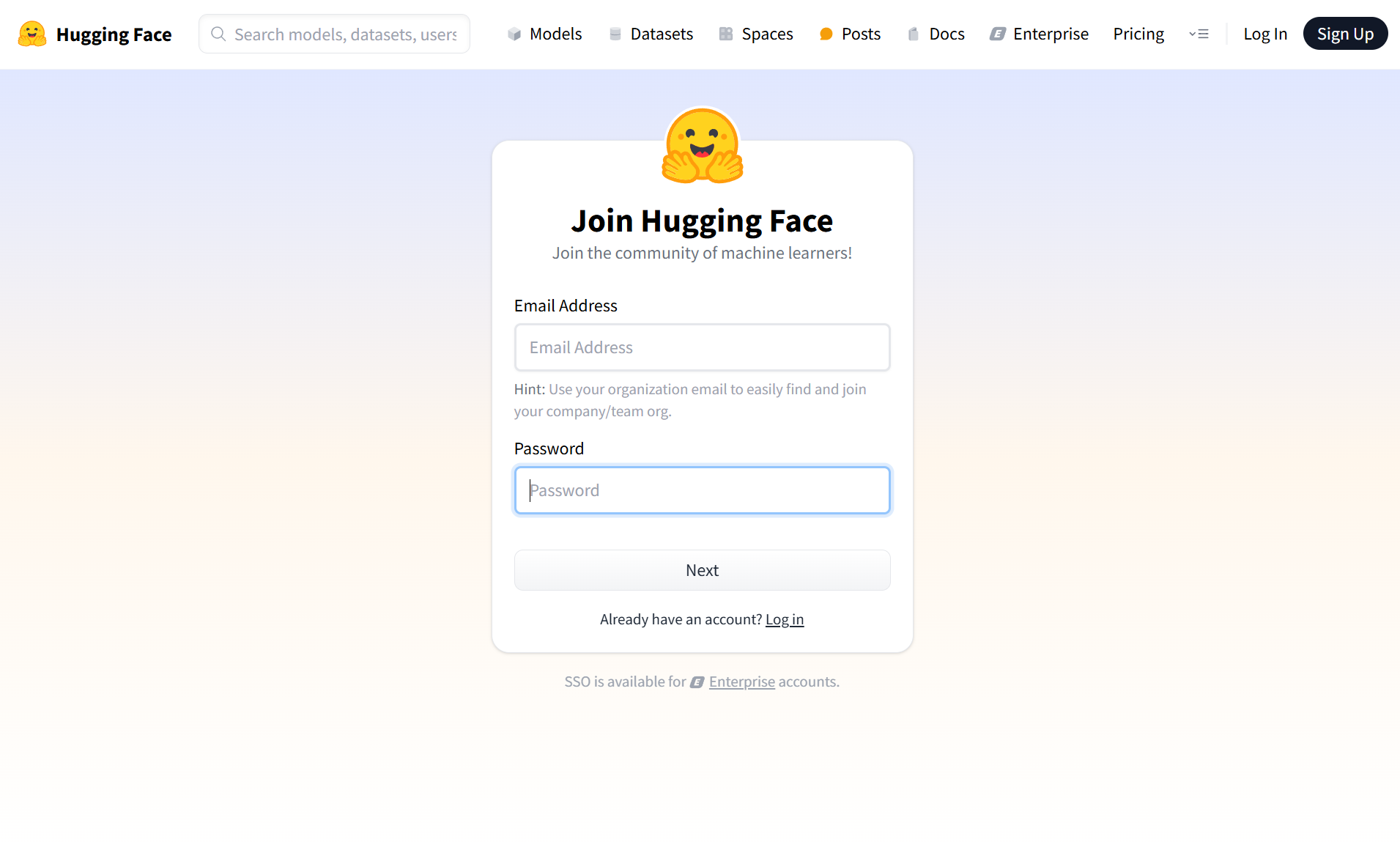 进入官网后点击右上角的 Sign Up(注册)按钮注册一个 HuggingFace 账号。