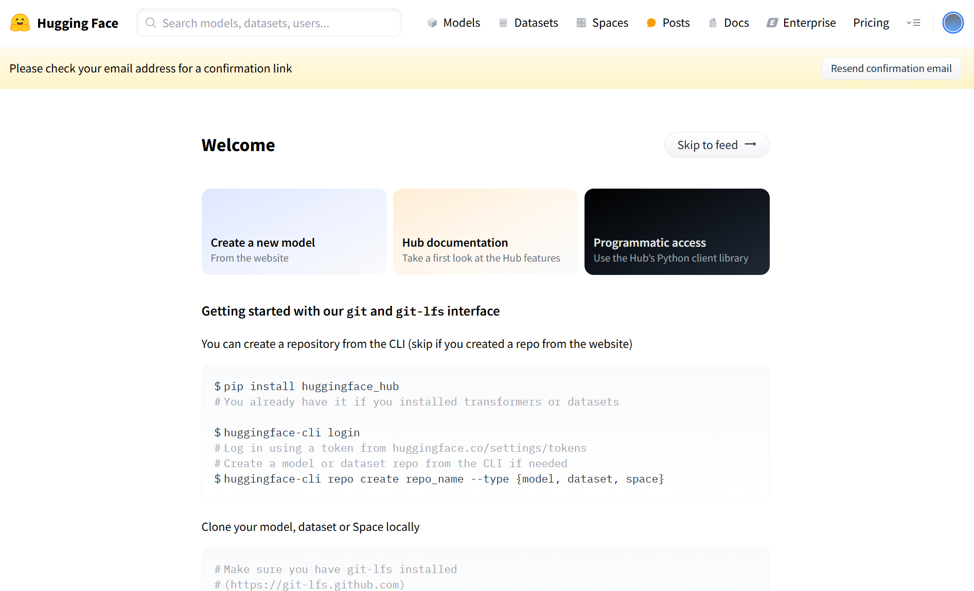 点击配置账号链接后,此时 HuggingFace 账号就完成了注册。